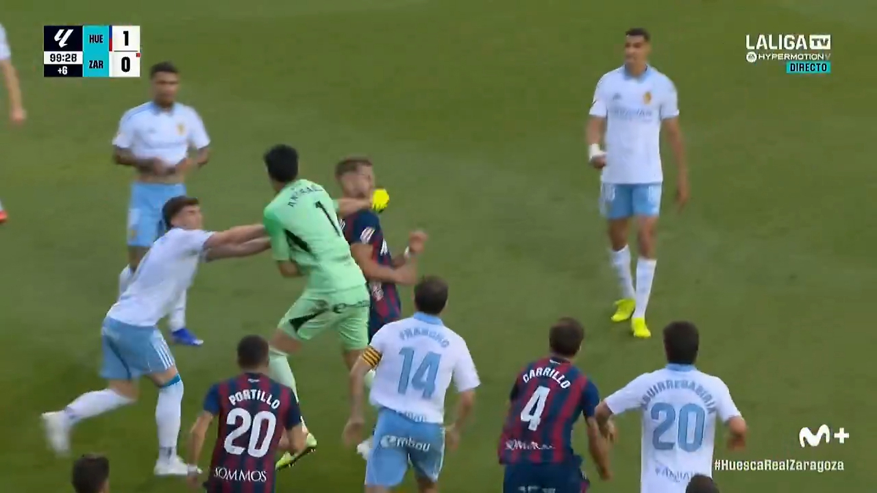 Huesca goalkeeper Dani Jiménez was also sent off for punching Andrada during the melee. Jiménez was suspended four matches for the punch.