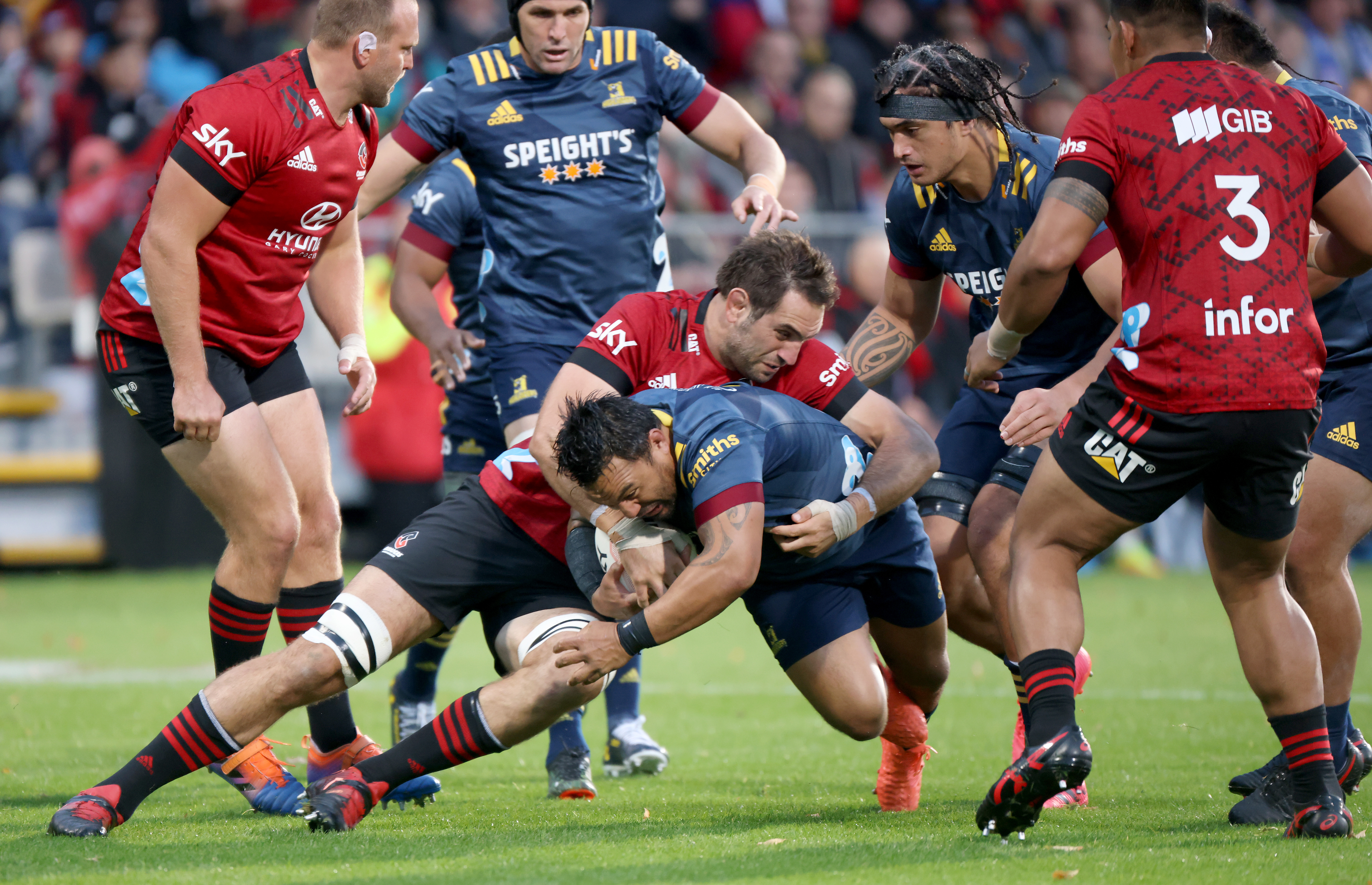 The Highlanders came out of the sheds with a siege like mentality, carrying the ball with vigour, and smacking the Crusaders' ball runners.