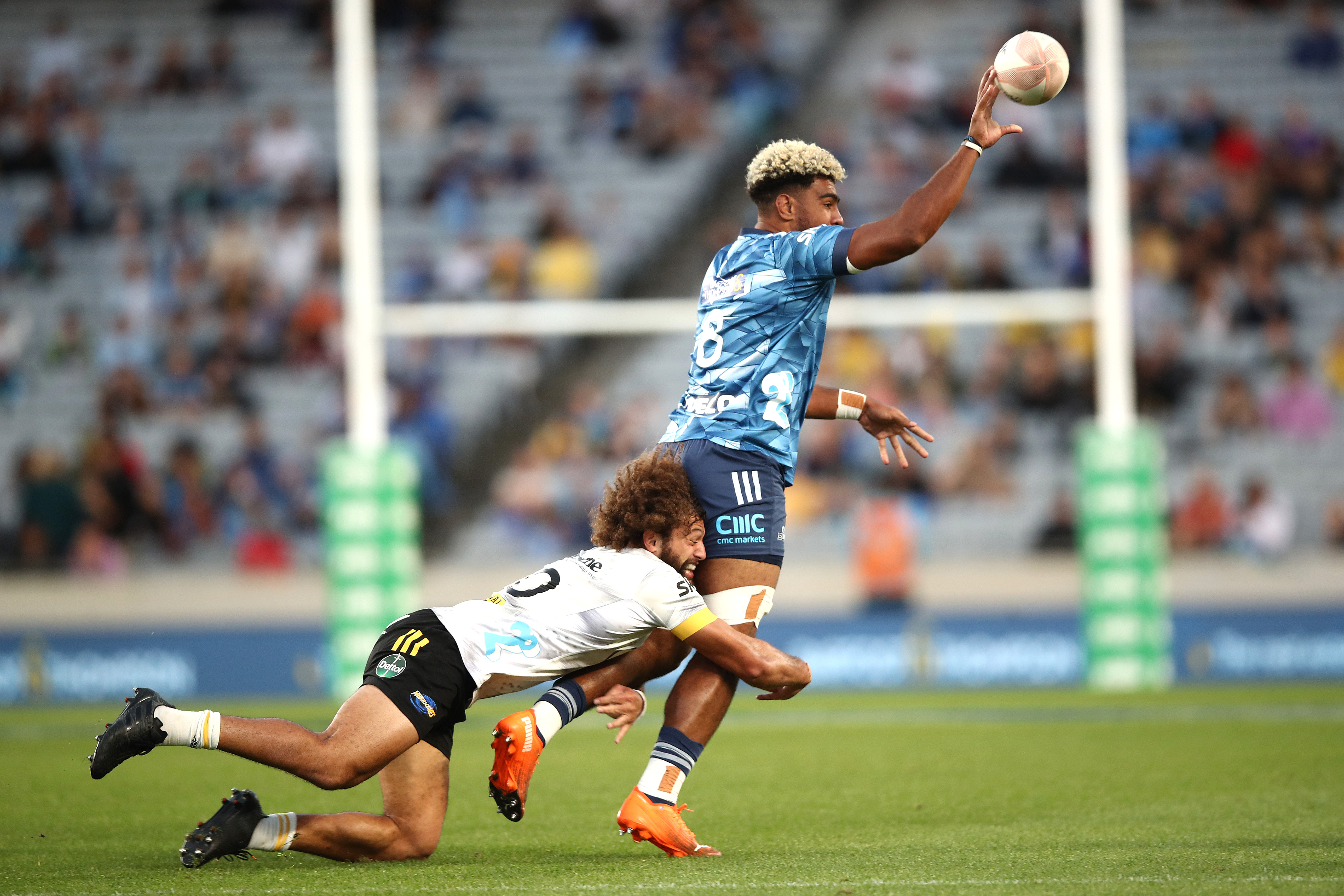 Blues 27 (TJ Faiane, Mark Telea tries; penalty try; Otere Black 2 pens, 2 cons), Hurricanes 17 (Reed Prinsep try; Jordie Barrett 4 pens). Ht: 10-9.