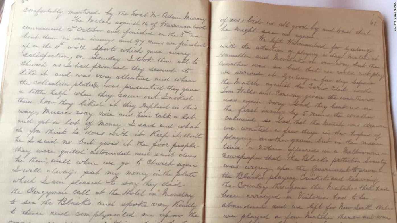 The Englishman's great-great-grandson, Friend, said Lawrence had a genuine affection for the players. "(He) loved these guys, wanted to teach them how to play, and take them back to England to teach them cricket," he said. "(At night) he went down and slept in the cabin next to them because he was worried they might be a bit scared in the water."