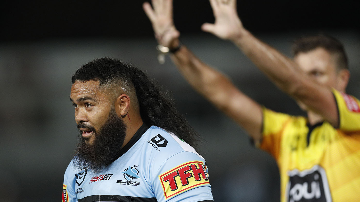 Sharks forward Siosifa Talakai is facing up to six weeks suspended over a shoulder charge against the Bulldogs.
