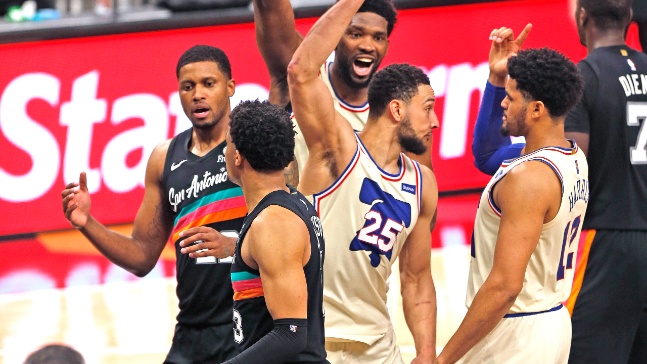 Even though the Spurs were missing four starters, Sixers coach Doc Rivers chose not to rest anyone. He was asked what factors into his decision to rest players and if the standings play a part.