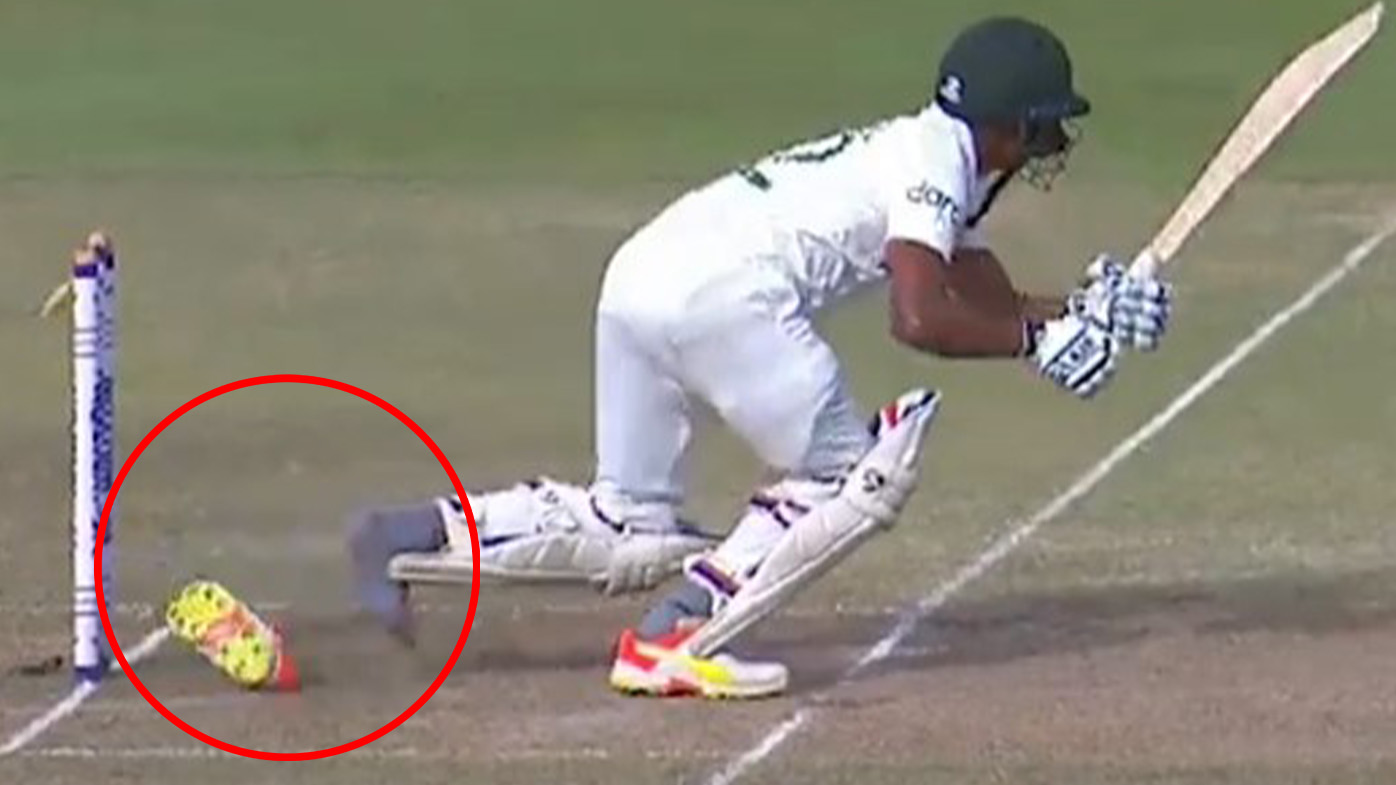 The 29-year-old then accidentally pushed his shoe onto the stumps, dislodging the leg bail and ending Bangladesh's innings in bizarre scenes.