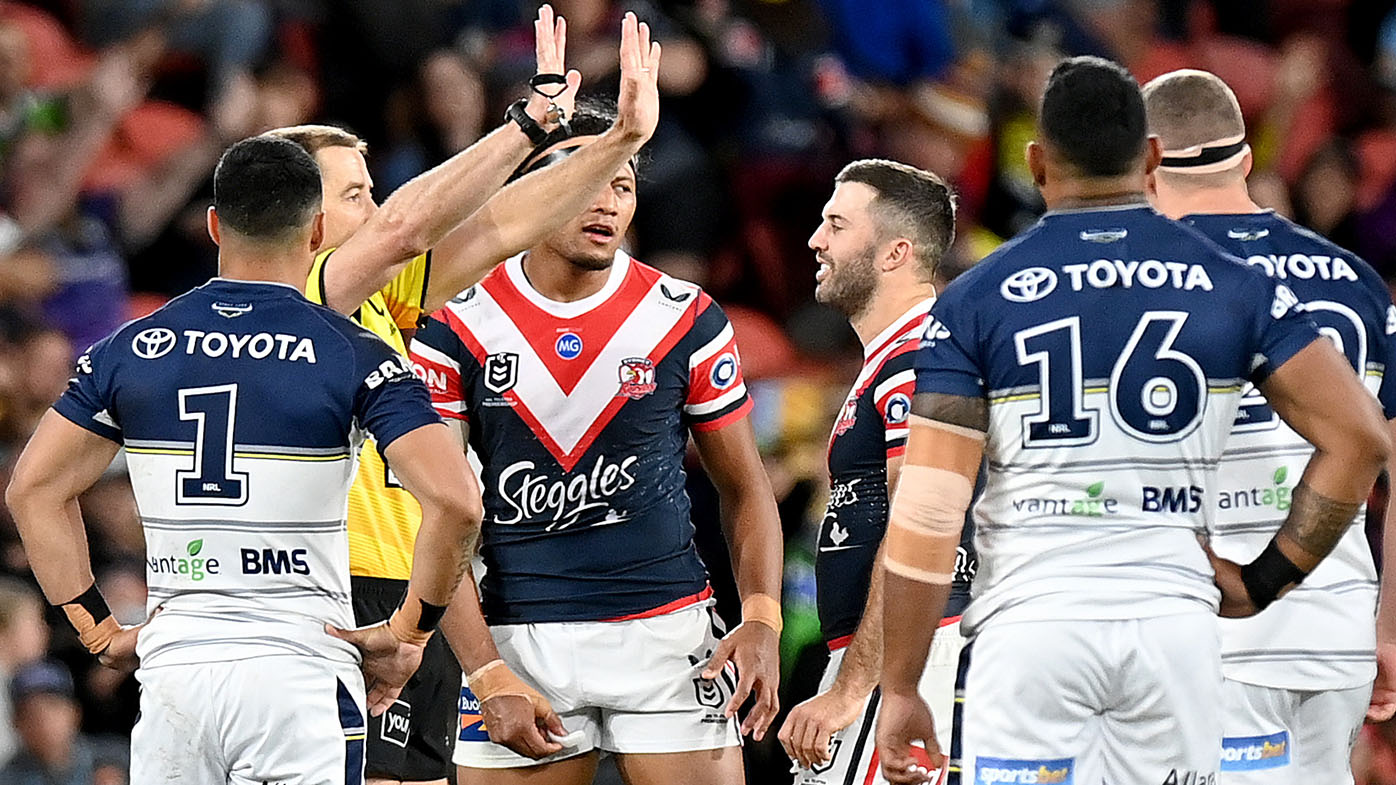 Parramatta legend Peter Sterling said that one tackle had left him uneasy: a clearly accidental 64th minute high shot from Cowboys forward Lachlan Burr on Roosters fullback James Tedesco. Burr was sin-binned and on Sunday copped a fine for a grade one careless high tackle; one of 10 charges from Saturday's three matches.