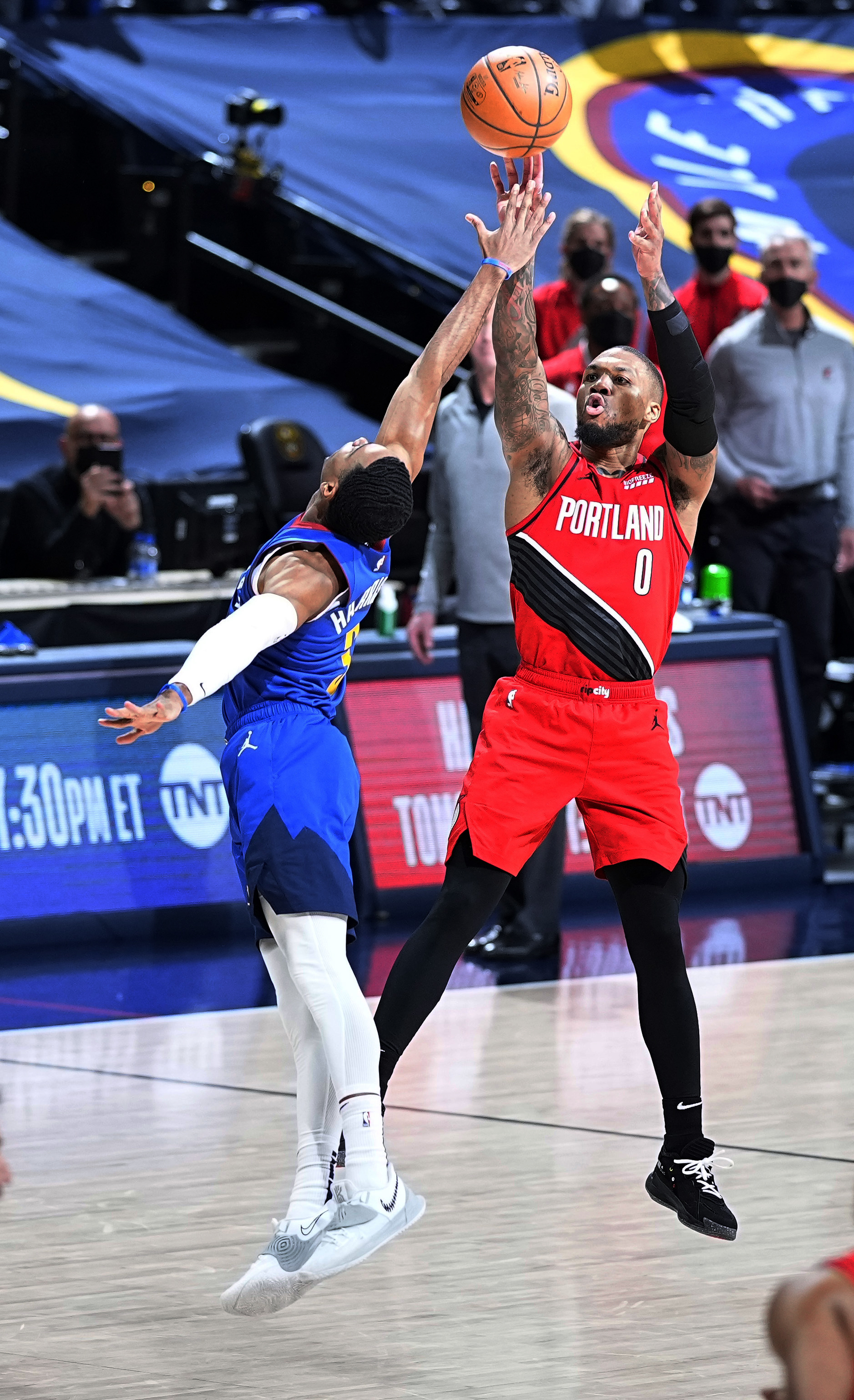 The Nuggets won despite Damian Lillard's franchise playoff record 55 points.
