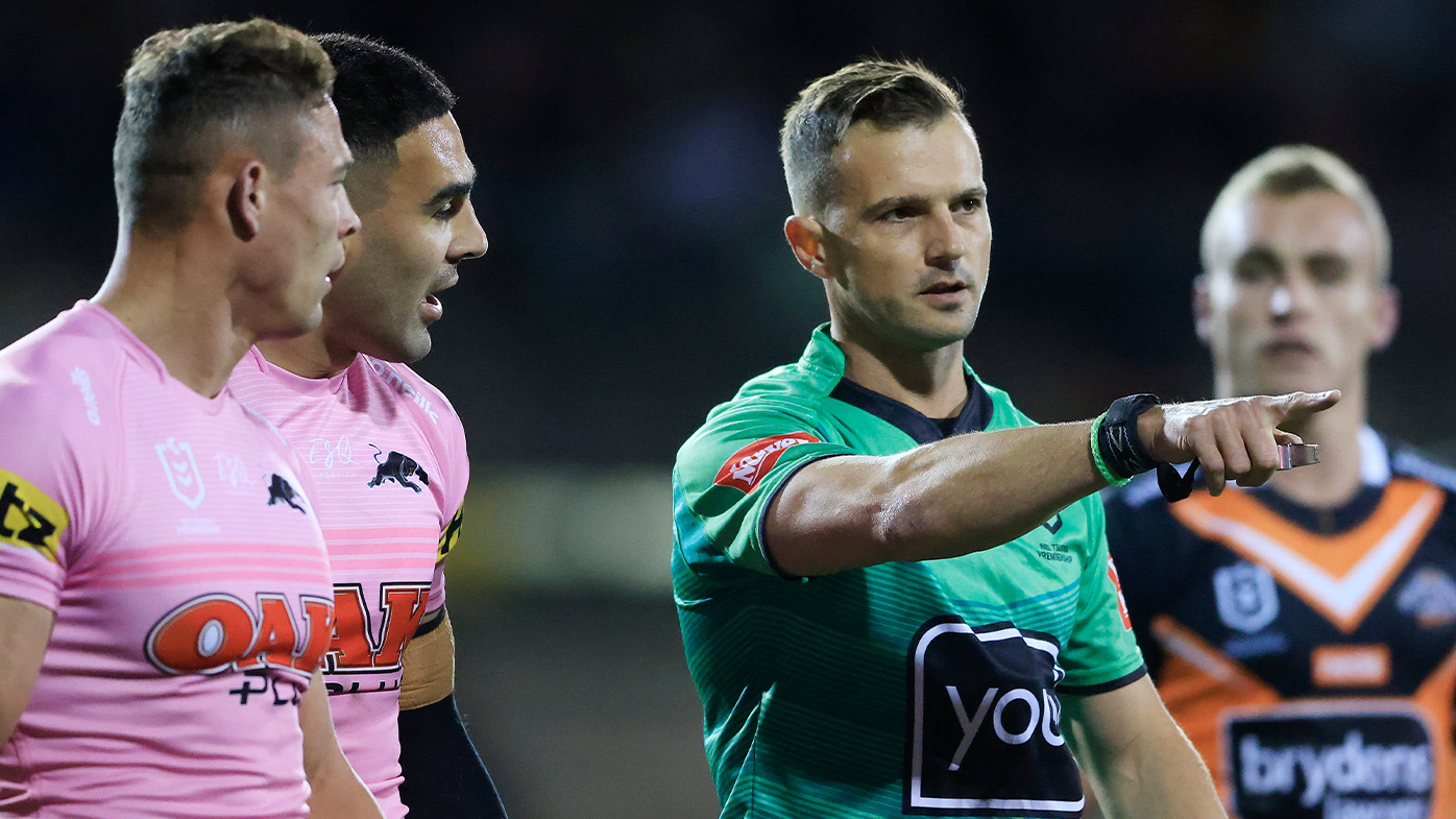 Whilst-blower Grant Atkins made the controversial ruling 65 minutes into the Leichardt Oval contest after Panthers winger Robert Jennings caught Leilua high during an attempt at a try.