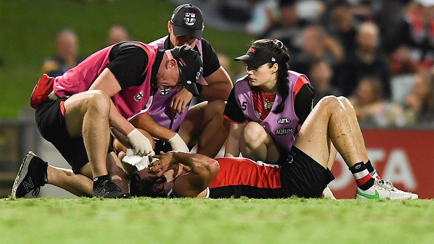 Mackay's right shoulder collided with Clark's face as the Crow and Saint hurtled toward the footy at extreme speeds from opposite ends of Cazaly's Stadium in Cairns, leaving Clark with two fractures in his jaw.