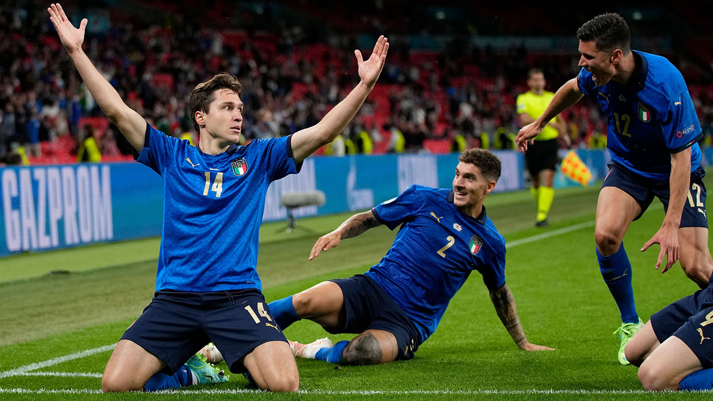 An unmarked Chiesa brought down Leonardo Spinazzola's high cross with his head, controlled the bouncing ball with his right boot and then used his other foot to shoot low into the net in the fifth minute of extra time.