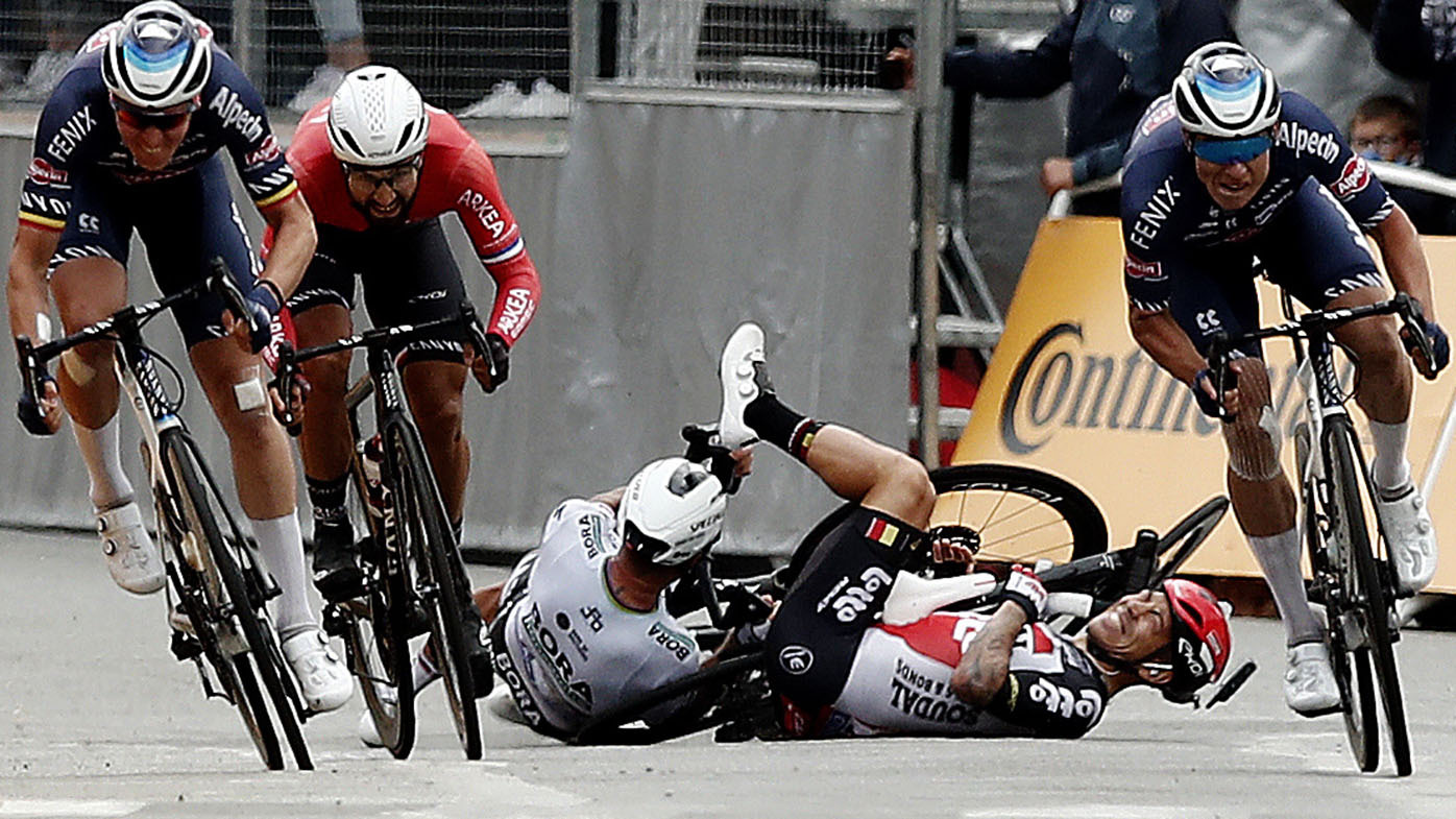 The final sprint was disrupted by another crash when Caleb Ewan's front wheel slid from under him on the final turn. He brought down Peter Sagan with him. Ewan, who won two stages last year, broke his right collarbone and abandoned the three-week race.