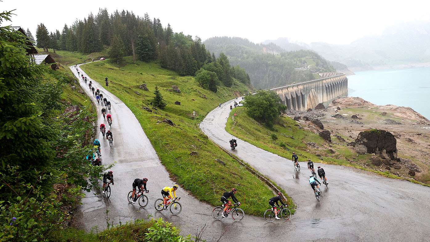 Defending champion Tadej Pogacar kept control of the Tour de France on a rain-soaked second day in the Alps as a crash-filled opening week took its toll on rivals on Sunday.