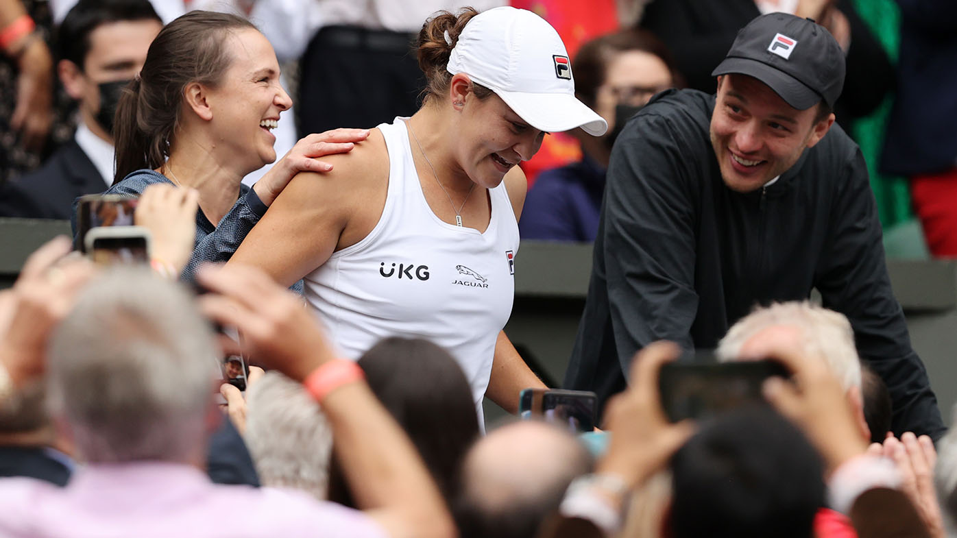 Head coach Craig Tyzzer, physiotherapist Mel Omizzolo and physical performance specialist Matt Hayes were the masterminds of Barty's recovery. An elated Omizzolo was the first person Barty embraced when she climbed up the Wimbledon stands to her players box post-match.