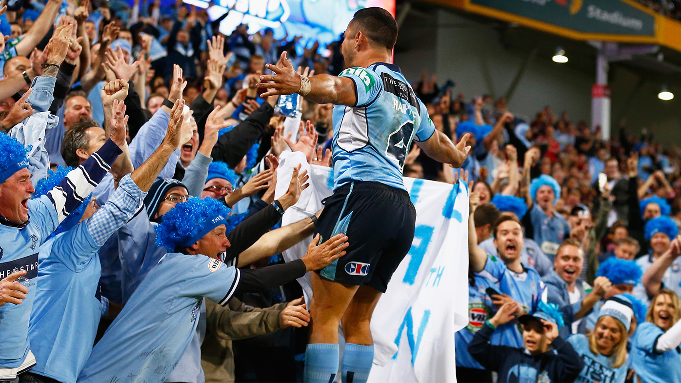 And as the full-time siren sounded to end Game Two of the 2014 State of Origin series, Jarryd Hayne ran the ball dead and jumped into the crowd.