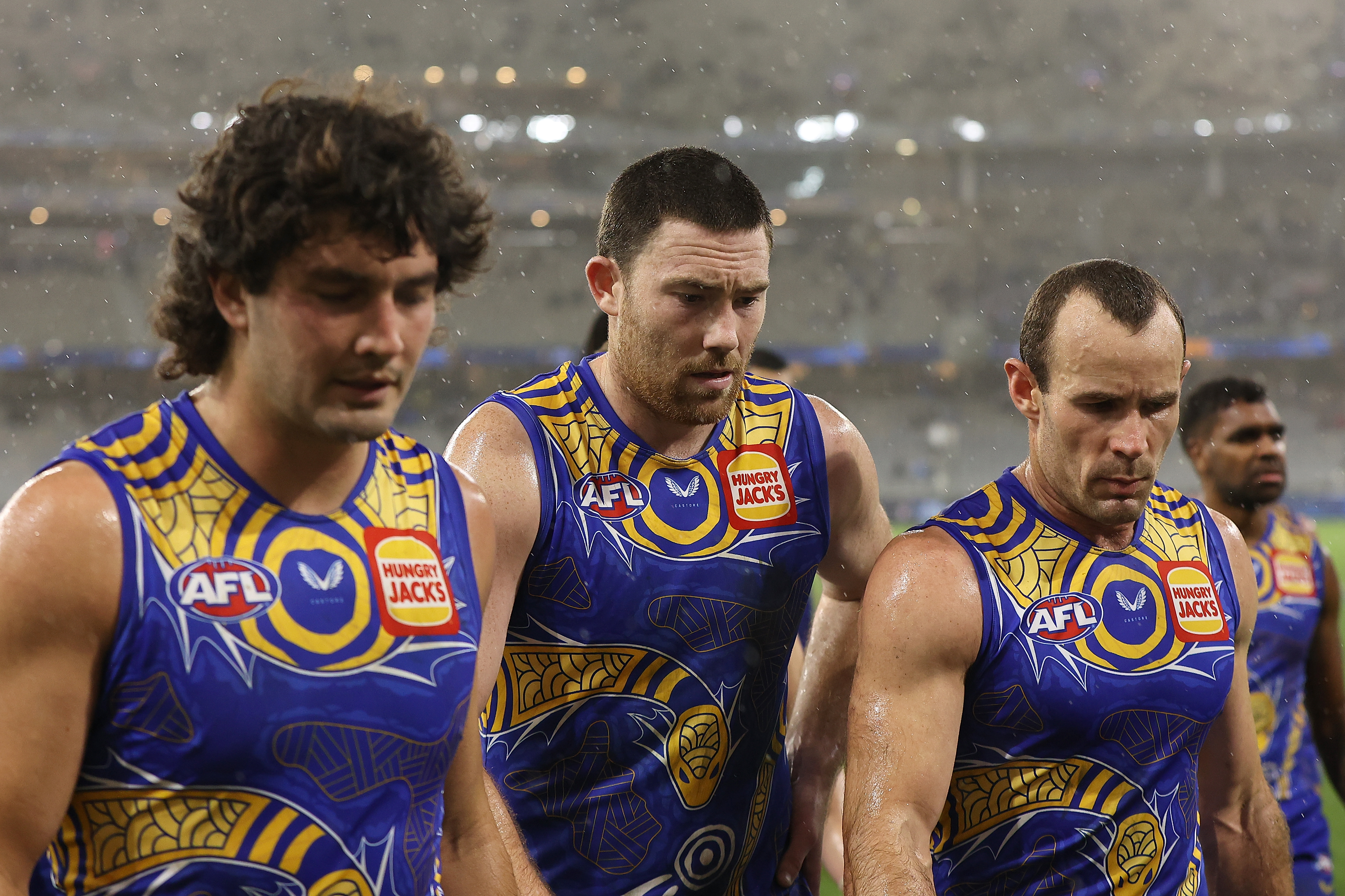 The Eagles' loss to the rebuilding Roos followed a 55-point thumping at the hands of the Western Bulldogs and a 92-point humiliation at the hands of the Swans.