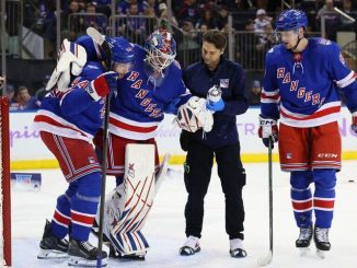 Rangers’ goaltender Igor Shesterkin helped off ice with injury after collision with Mammoth’s JJ Peterka January 6, 2026 admin 0