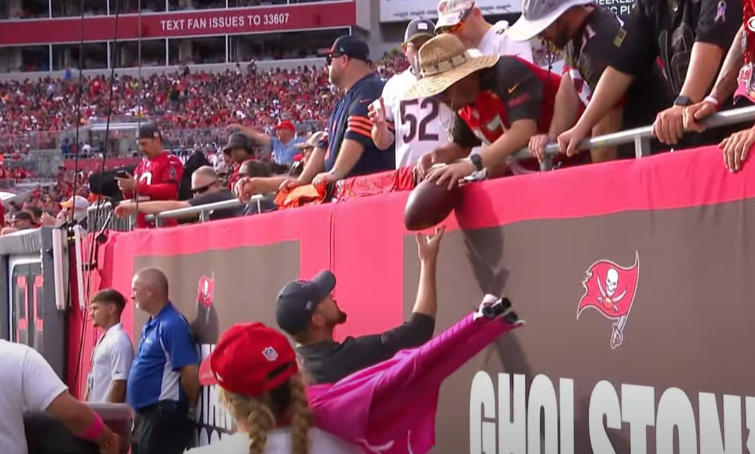 During the Tampa Bay Buccaneers' 38-3 victory over the Chicago Bears -- where he was sitting in the front row -- he was handed a ball by Mike Evans after the wide receiver scored the Buccaneers' third touchdown in the first quarter.